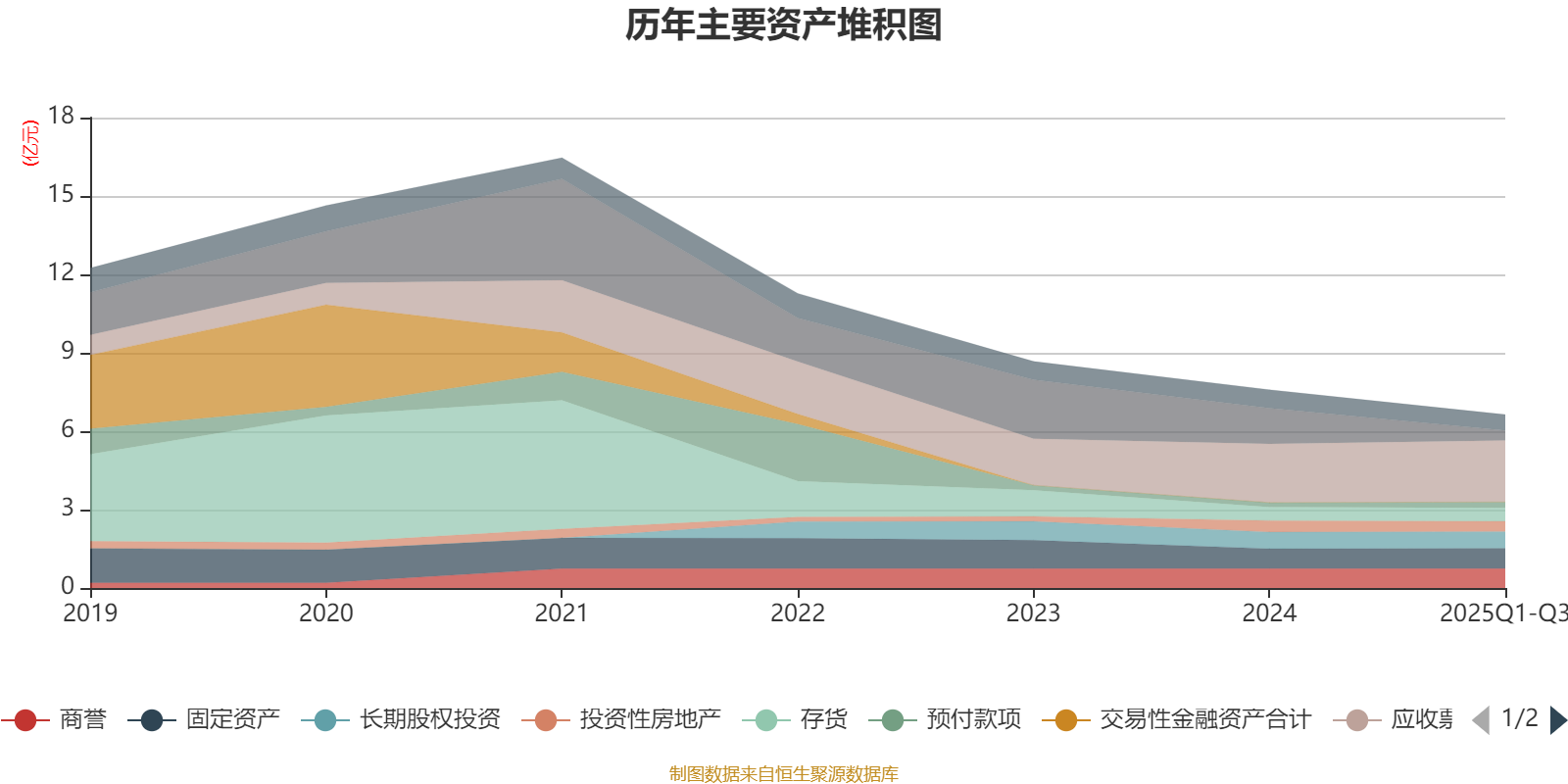 资产重大变化方面,截至2025年三季度末,公司货币资金较上年末减少72.26%,占公司总资产比重下降12.29个百分点;应收票据及应收账款较上年末增加4.9%,占公司总资产比重上升5.9个百分点;固定资产较上年末增加1.98%,占公司总资产比重上升1.67个百分点;商誉较上年末没有变化,占公司总资产比重上升1.39个百分点。
