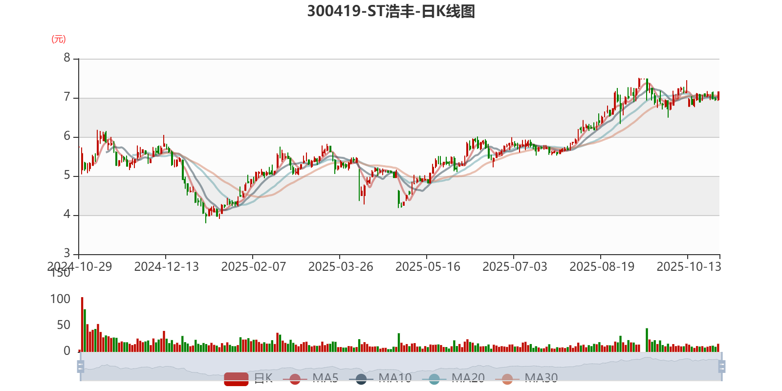中证智能财讯 ST浩丰(300419)10月29日披露2025年第三季度报告。前三季度公司实现营业总收入1.57亿元,同比下降42.61%;归母净利润亏损1530.39万元,上年同期盈利591.17万元;扣非净利润亏损1730.37万元,上年同期盈利225.52万元;经营活动产生的现金流量净额为-7503.57万元,上年同期为-9437.98万元;报告期内,ST浩丰基本每股收益为-0.0416元,加权平均净资产收益率为-3.48%。