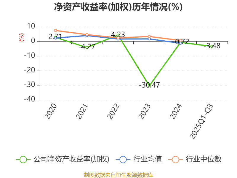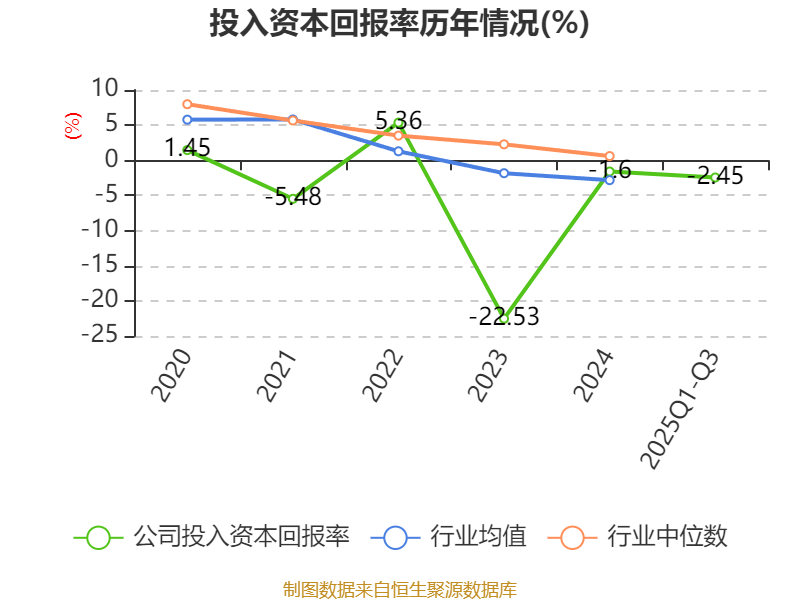 盈利能力方面, 2025年前三季度公司加权平均净资产收益率为-3.48%,同比下降4.78个百分点。公司2025年前三季度投入资本回报率为-2.45%,较上年同期下降4.01个百分点。