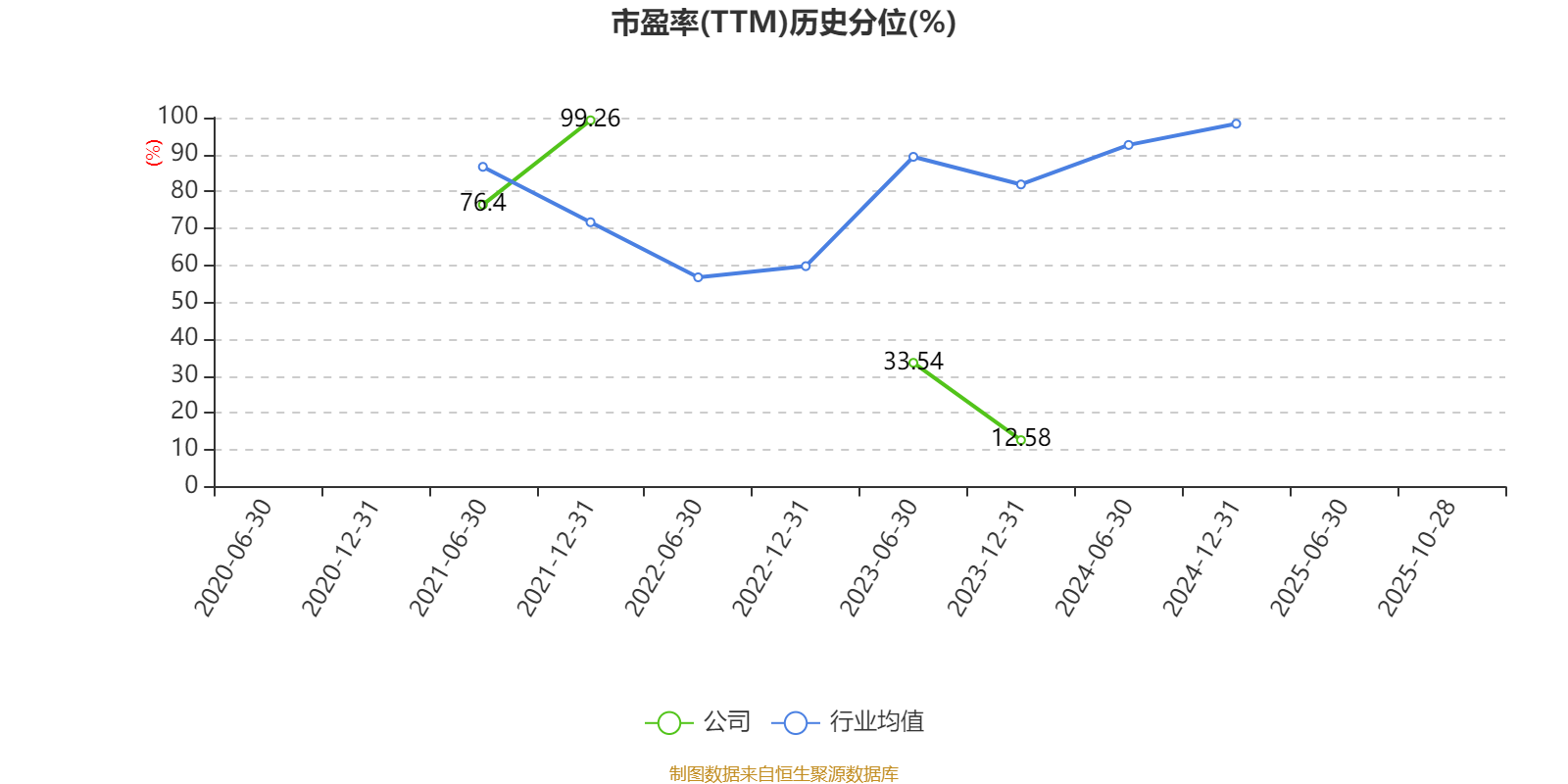 市盈率、市净率为负时,不显示当期分位数,会导致折线图中断。