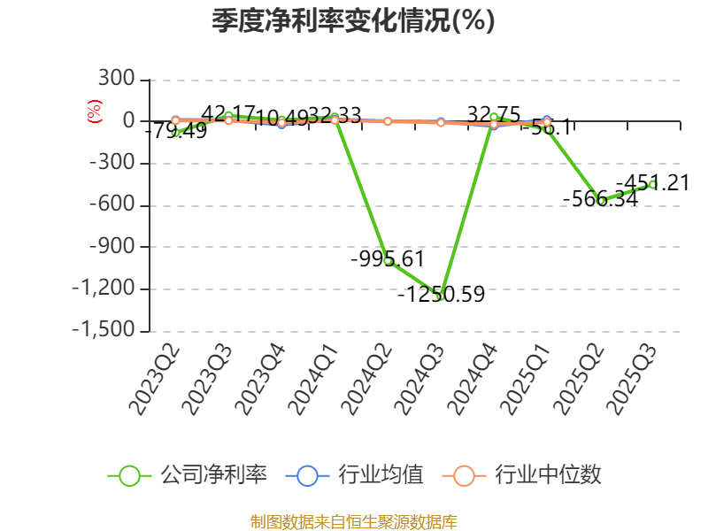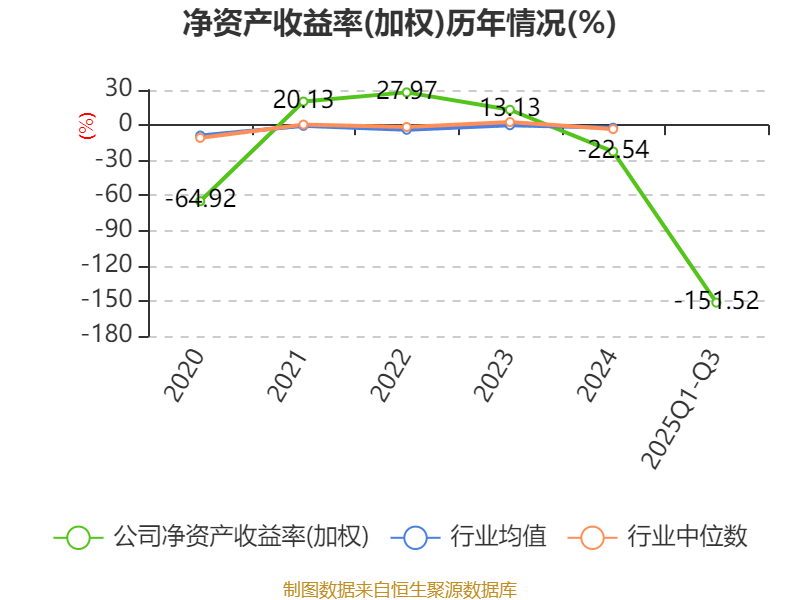 盈利能力方面, 2025年前三季度公司加权平均净资产收益率为-151.52%,同比下降77.14个百分点。公司2025年前三季度投入资本回报率为-79.99%,较上年同期下降73.51个百分点。