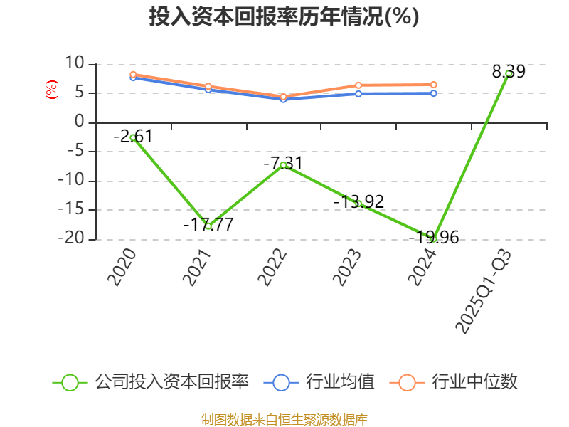 盈利能力方面, 2025年前三季度公司加权平均净资产收益率为34%,同比上升66.52个百分点。公司2025年前三季度投入资本回报率为8.39%,较上年同期上升22.6个百分点。