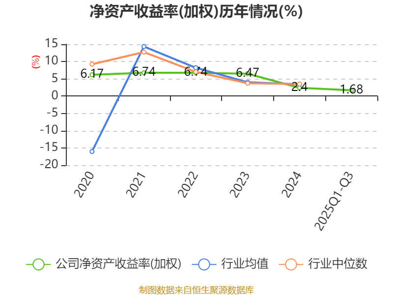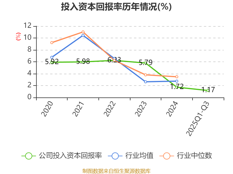 盈利能力方面, 2025年前三季度公司加权平均净资产收益率为1.68%,同比上升0.12个百分点。公司2025年前三季度投入资本回报率为1.17%,较上年同期下降0.24个百分点。