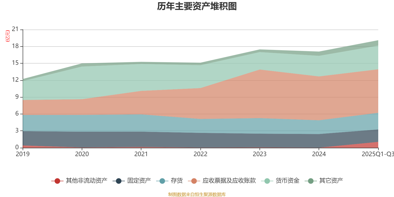 资产重大变化方面,截至2025年三季度末,公司其他非流动资产较上年末增加7350.84%,占公司总资产比重上升5.35个百分点;应收票据及应收账款较上年末减少0.71%,占公司总资产比重下降5.11个百分点;固定资产较上年末减少8.74%,占公司总资产比重下降2.6个百分点;存货较上年末增加20.79%,占公司总资产比重上升1.15个百分点。