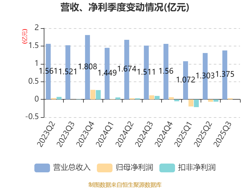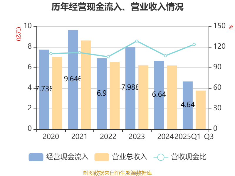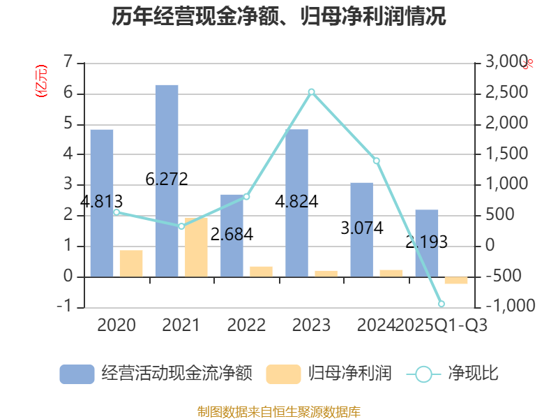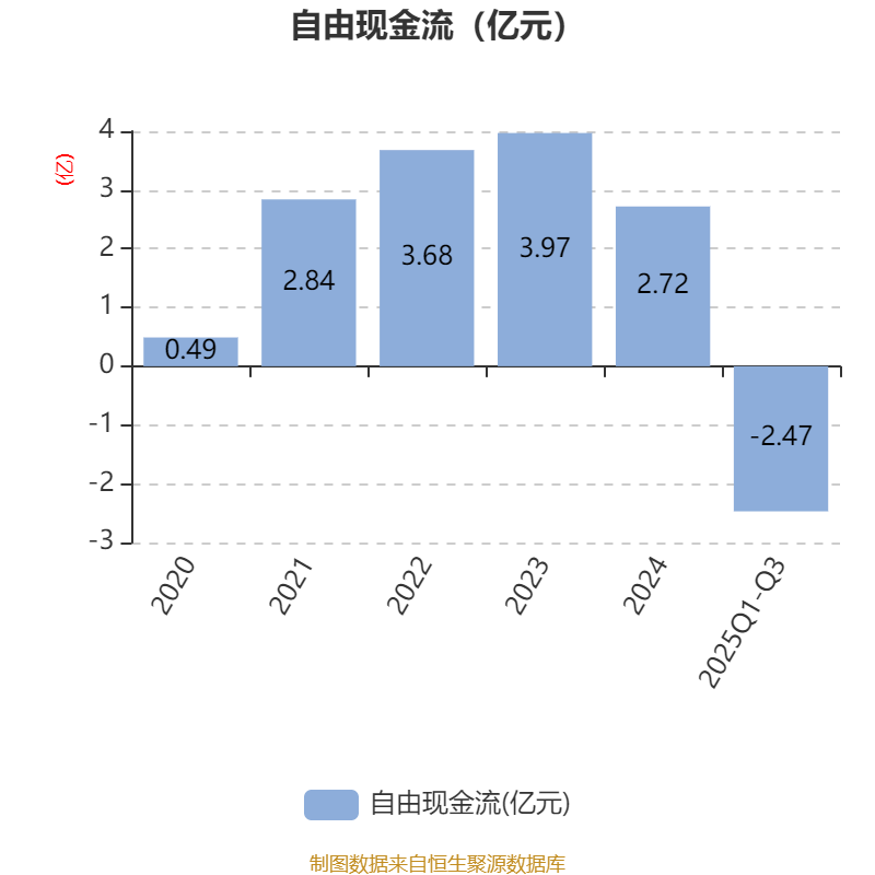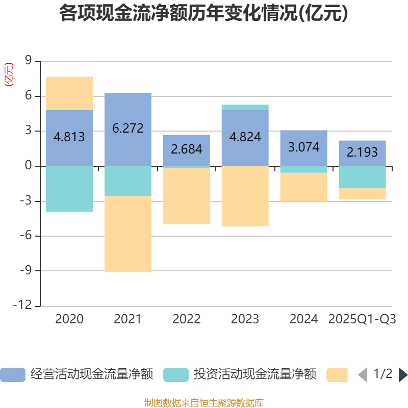 2025年前三季度,公司经营活动现金流净额为2.19亿元,同比增长6.24%;筹资活动现金流净额-9641.93万元,同比增加7236.18万元;投资活动现金流净额-1.9亿元,上年同期为-1028.74万元。