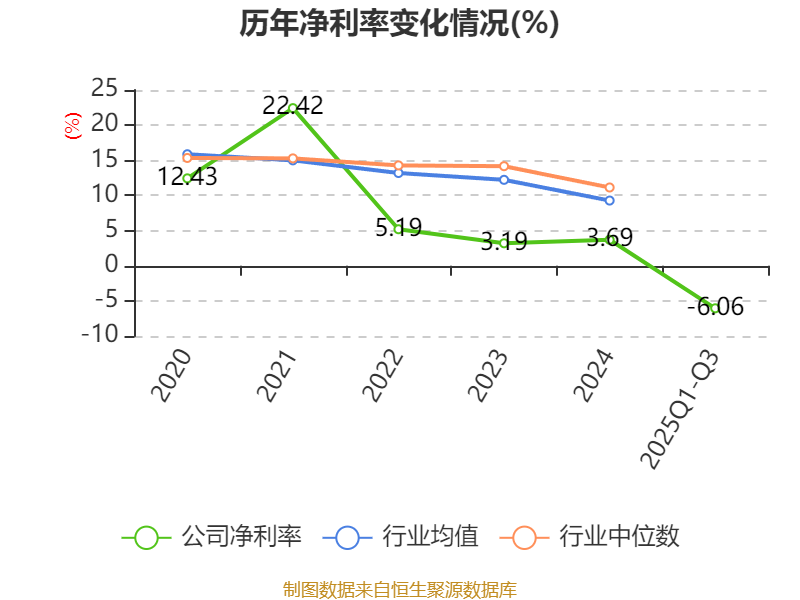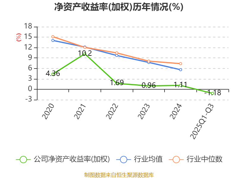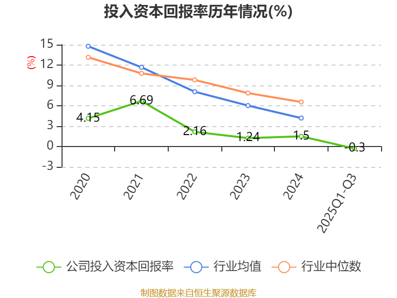 盈利能力方面, 2025年前三季度公司加权平均净资产收益率为-1.18%,同比下降1.97个百分点。公司2025年前三季度投入资本回报率为-0.3%,较上年同期下降1.27个百分点。