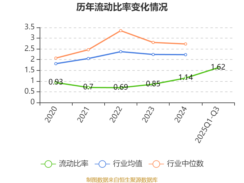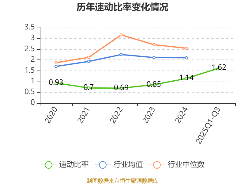 2025年前三季度,公司流动比率为1.62,速动比率为1.62。