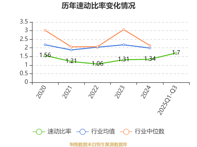 2025年前三季度,公司流动比率为1.91,速动比率为1.7。