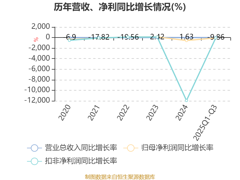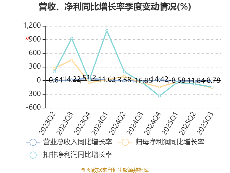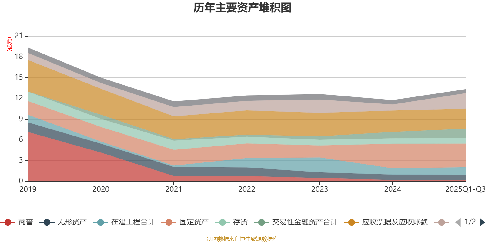 资产重大变化方面,截至2025年三季度末,公司货币资金较上年末增加154.56%,占公司总资产比重上升9.34个百分点;固定资产较上年末减少4.25%,占公司总资产比重下降4.71个百分点;应收票据及应收账款较上年末减少6.07%,占公司总资产比重下降4.5个百分点;交易性金融资产合计较上年末增加41.37%,占公司总资产比重上升1.96个百分点。