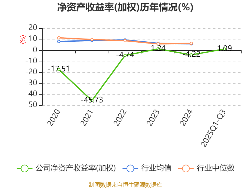 盈利能力方面, 2025年前三季度公司加权平均净资产收益率为1.09%,同比下降3.9个百分点。公司2025年前三季度投入资本回报率为1.01%,较上年同期下降3.21个百分点。