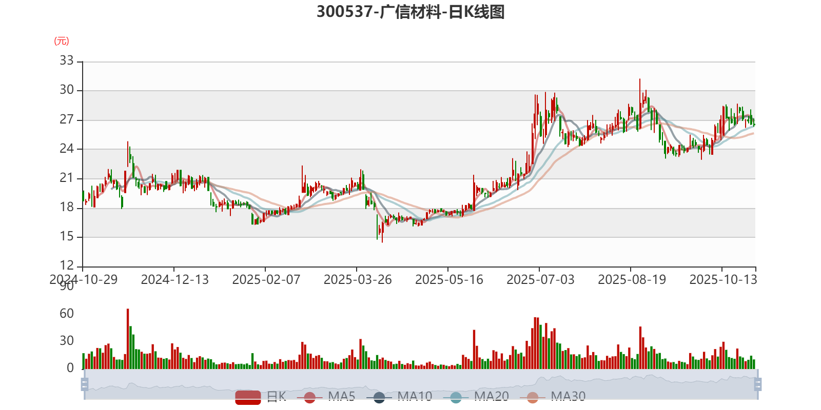 以10月28日收盘价计算,广信材料目前市盈率(TTM)约为-92.93倍,市净率(LF)约6.1倍,市销率(TTM)约11.48倍。