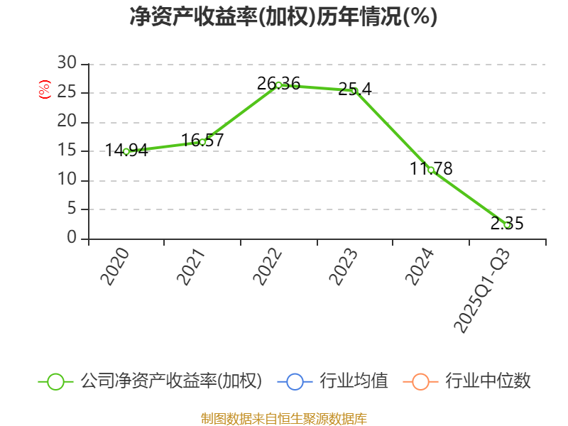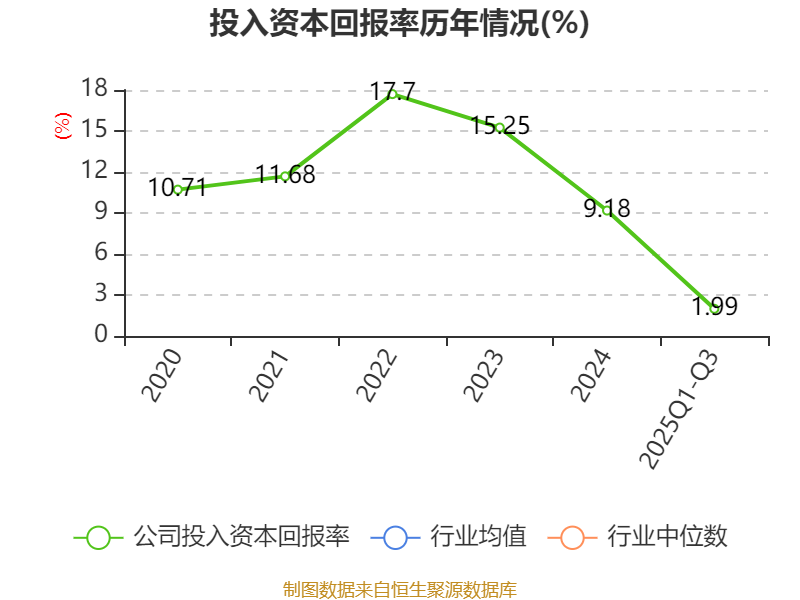 盈利能力方面, 2025年前三季度公司加权平均净资产收益率为2.35%,同比下降7.23个百分点。公司2025年前三季度投入资本回报率为1.99%,较上年同期下降5个百分点。