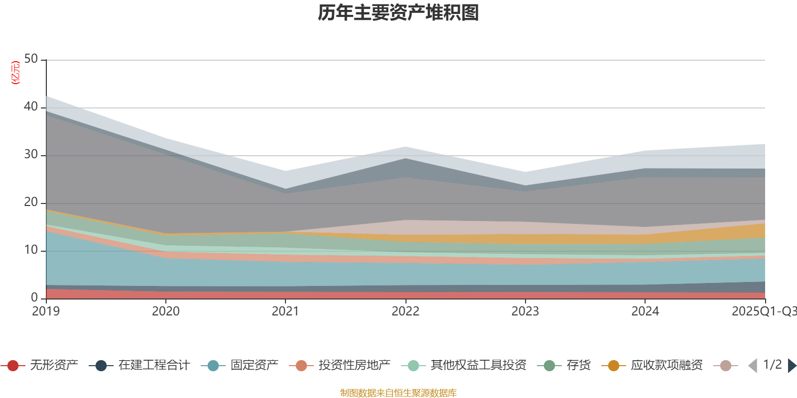 资产重大变化方面,截至2025年三季度末,公司应收票据及应收账款较上年末减少14.41%,占公司总资产比重下降6.09个百分点;预付款项较上年末增加326.78%,占公司总资产比重上升2.92个百分点;应收款项融资较上年末增加52.52%,占公司总资产比重上升2.91个百分点;合同资产较上年末减少52.05%,占公司总资产比重下降2.77个百分点。