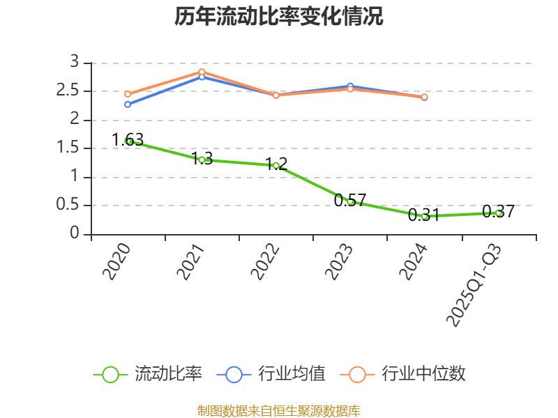 2025年前三季度,公司流动比率为0.37,速动比率为0.27。
