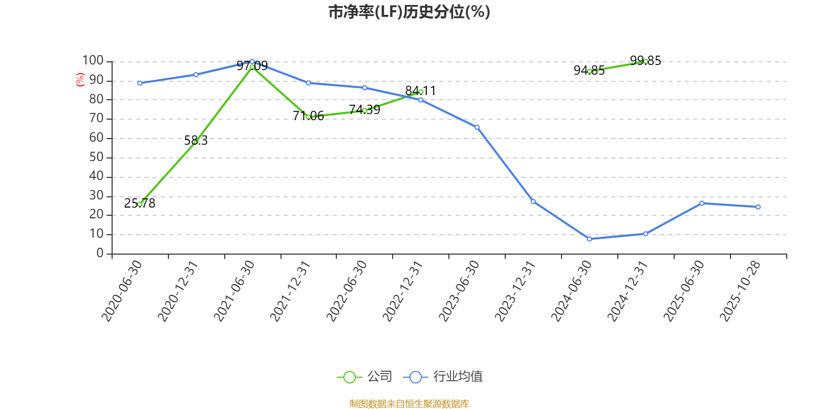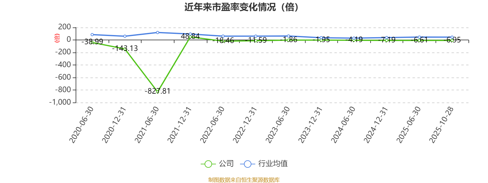 市盈率、市净率为负时,不显示当期分位数,会导致折线图中断。