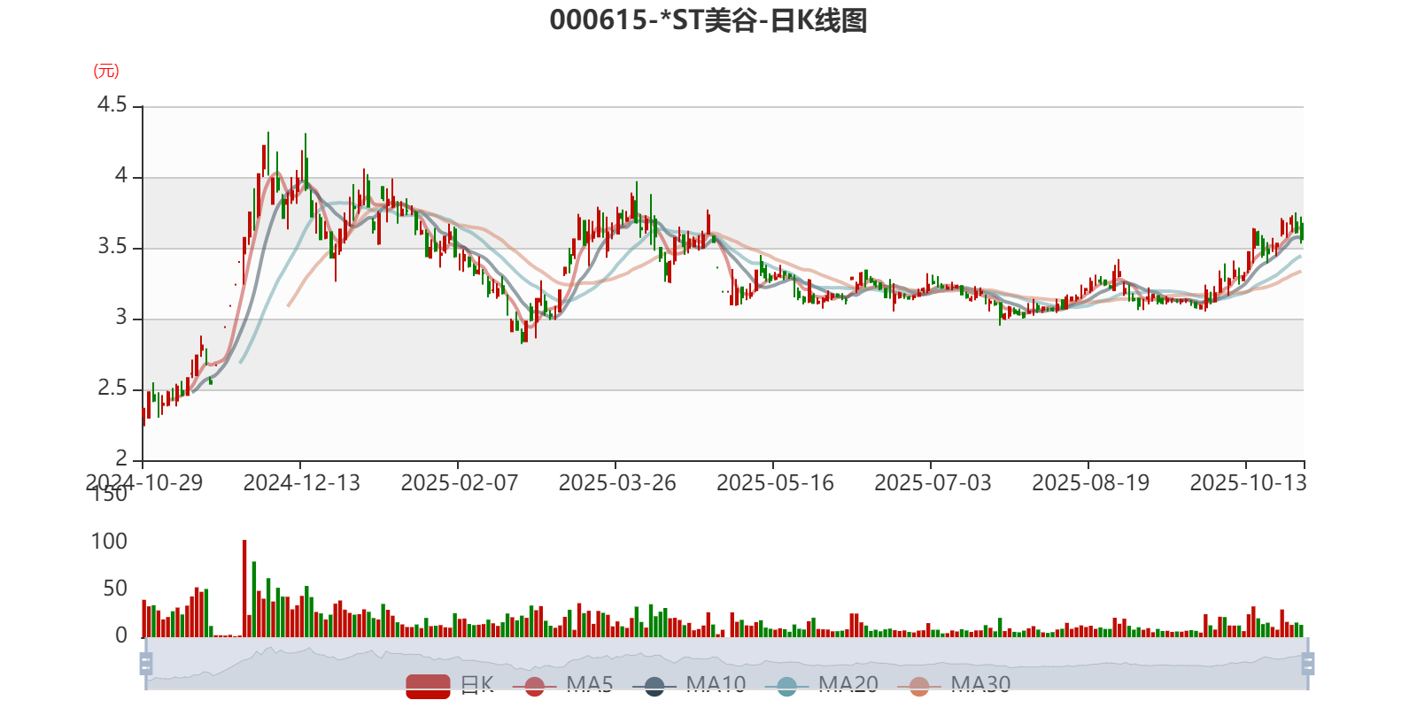 以10月28日收盘价计算,*ST美谷目前市盈率(TTM)约为-6.95倍,市净率(LF)约-10.73倍,市销率(TTM)约2.66倍。