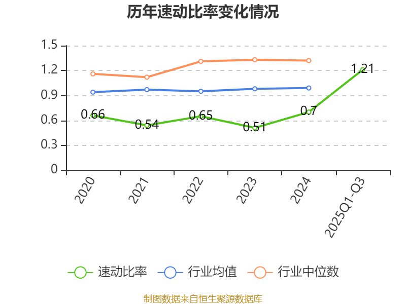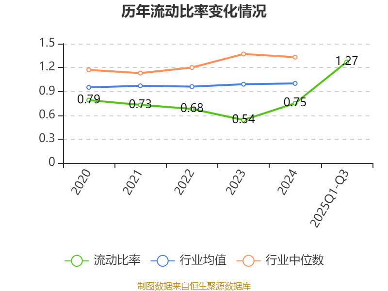 2025年前三季度,公司流动比率为1.27,速动比率为1.21。