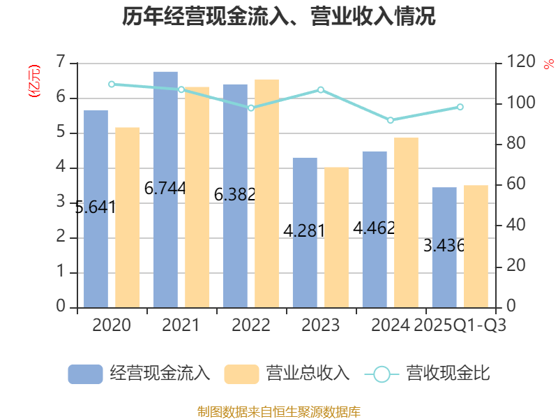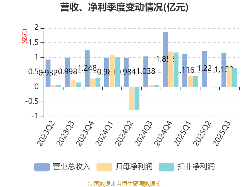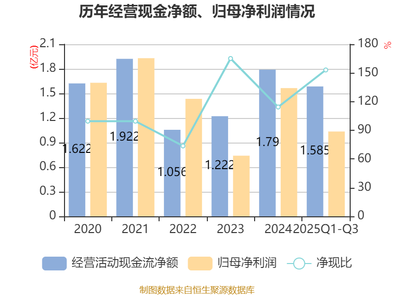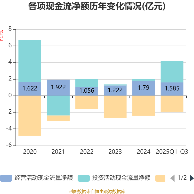 2025年前三季度,公司经营活动现金流净额为1.59亿元,同比增长32.75%;筹资活动现金流净额-1.94亿元,同比增加1219.63万元;投资活动现金流净额2.57亿元,上年同期为3944.98万元。