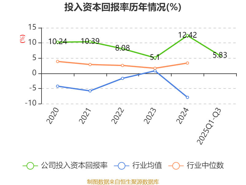 盈利能力方面, 2025年前三季度公司加权平均净资产收益率为6.74%,同比上升4.09个百分点。公司2025年前三季度投入资本回报率为5.83%,较上年同期上升3.05个百分点。