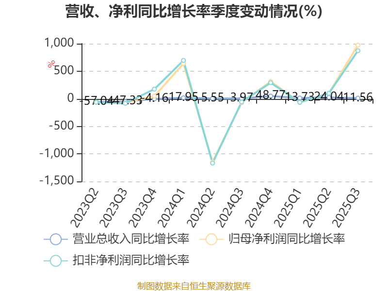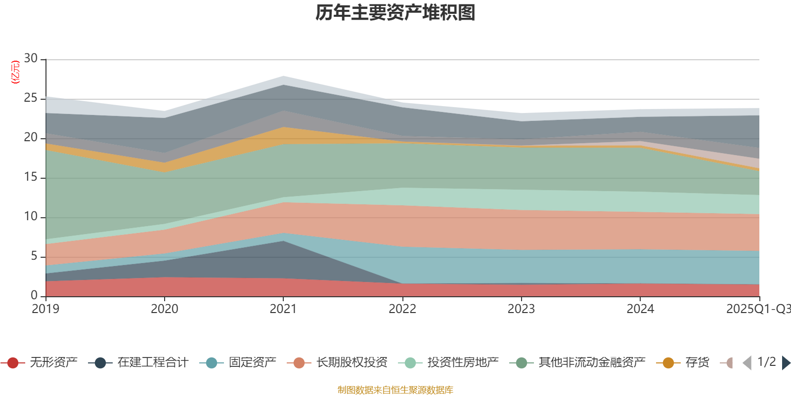 资产重大变化方面,截至2025年三季度末,公司其他非流动金融资产较上年末减少45.63%,占公司总资产比重下降10.78个百分点;货币资金较上年末增加119.59%,占公司总资产比重上升9.38个百分点;交易性金融资产合计较上年末增加120.65%,占公司总资产比重上升2.78个百分点;应收票据及应收账款较上年末增加15.9%,占公司总资产比重上升0.76个百分点。