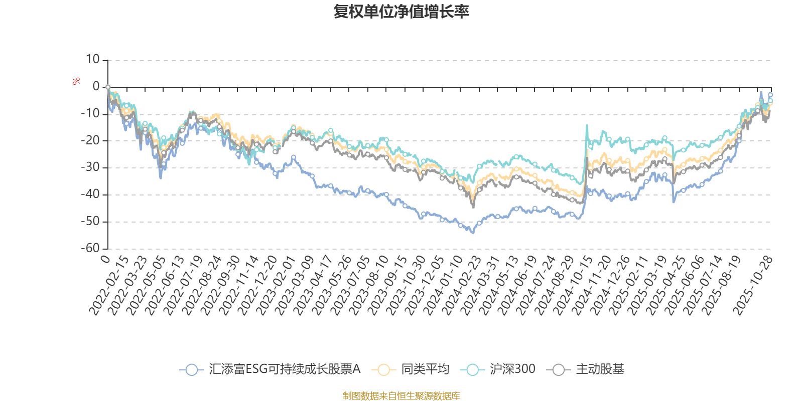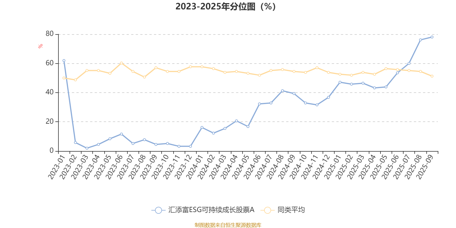 截至10月28日,汇添富ESG可持续成长股票A近三个月复权单位净值增长率为32.89%,位于同类可比基金14/167;近半年复权单位净值增长率为56.72%,位于同类可比基金13/166;近一年复权单位净值增长率为59.13%,位于同类可比基金9/164;近三年复权单位净值增长率为35.47%,位于同类可比基金56/156。