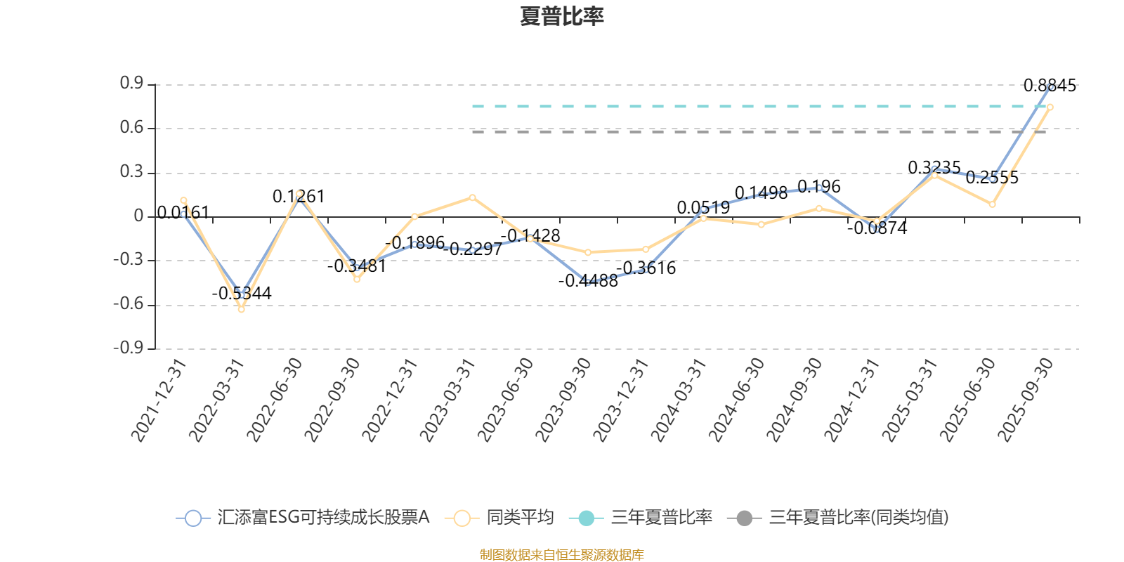 截至9月30日,基金近三年夏普比率为0.7505,位于同类可比基金45/156。