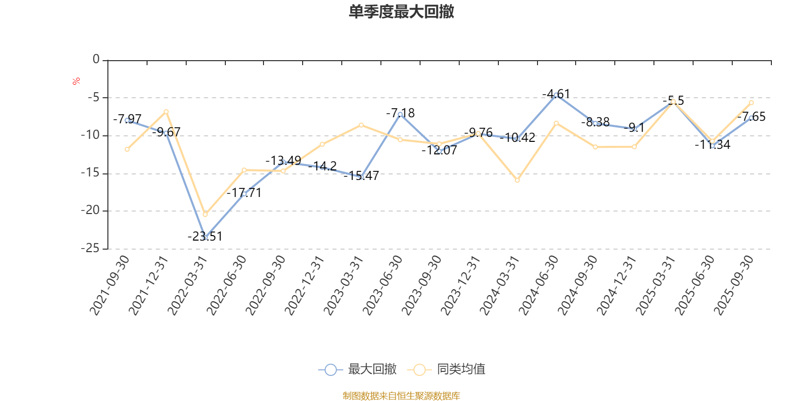 截至10月27日,基金近三年最大回撤为40.47%,同类可比基金排名117/156。单季度最大回撤出现在2022年一季度,为23.51%。