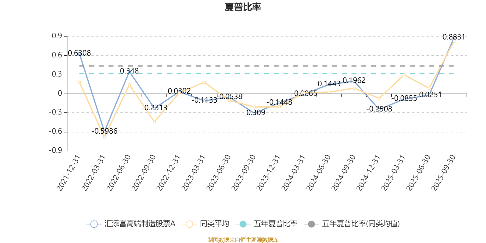 截至9月30日,基金近三年夏普比率为0.3966,位于同类可比基金50/56。
