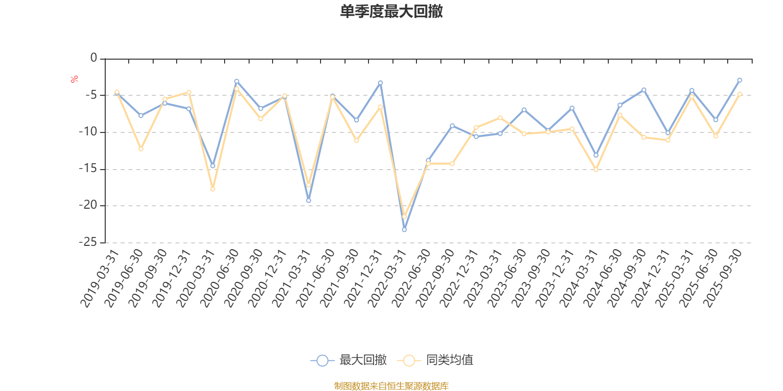 截至10月27日,基金近三年最大回撤为28.88%,同类可比基金排名22/56。单季度最大回撤出现在2022年一季度,为23.23%。