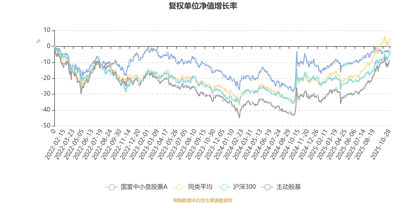 截至10月28日,国富中小盘股票A近三个月复权单位净值增长率为0.75%,位于同类可比基金57/58;近半年复权单位净值增长率为8.79%,位于同类可比基金57/57;近一年复权单位净值增长率为6.12%,位于同类可比基金55/57;近三年复权单位净值增长率为18.10%,位于同类可比基金42/56。