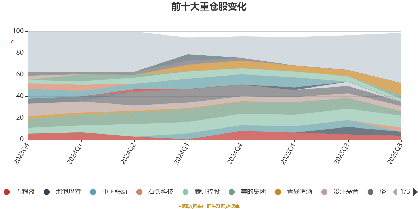 该基金持股集中度较高。截至2025年三季度末,基金十大重仓股分别是阿里巴巴-W、腾讯控股、贵州茅台、美的集团、石头科技、格力电器、恒瑞医药、泡泡玛特、五粮液、海尔智家。