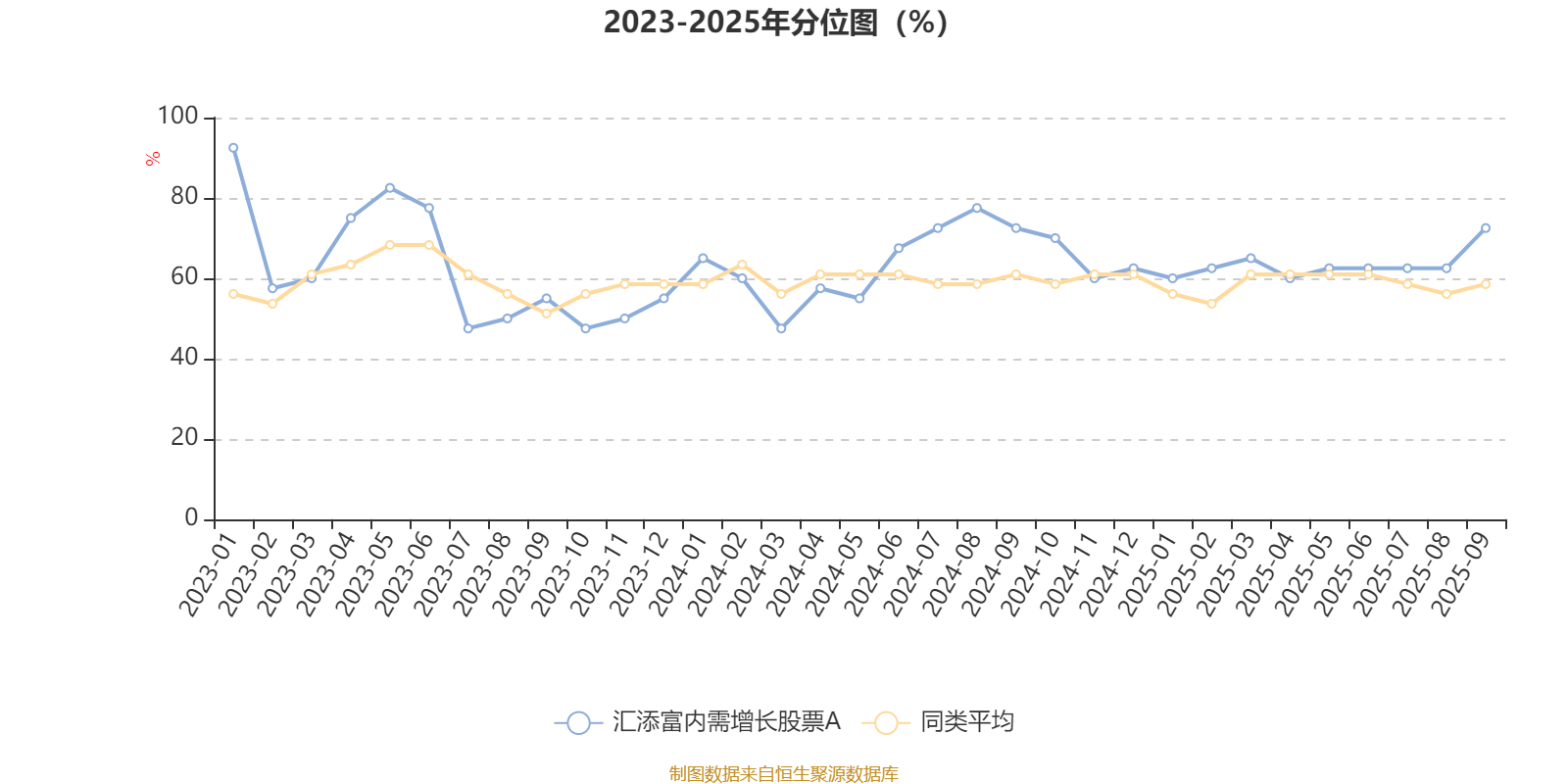通过所选区间该基金净值增长率分位图,可以观察该基金与同类基金业绩比较情况。图为坐标原点到区间内某时点的净值增长率在同类基金中的分位数。