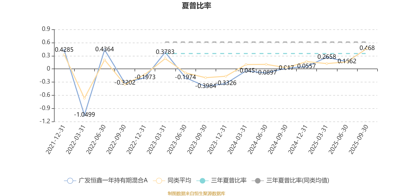 截至9月30日,基金近三年夏普比率为0.3506,位于同类可比基金427/553。
