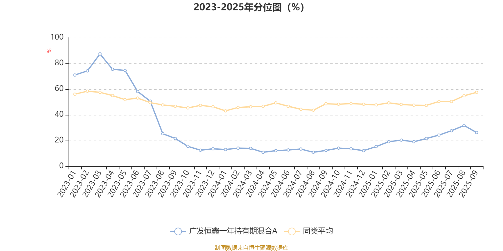 通过所选区间该基金净值增长率分位图,可以观察该基金与同类基金业绩比较情况。图为坐标原点到区间内某时点的净值增长率在同类基金中的分位数。