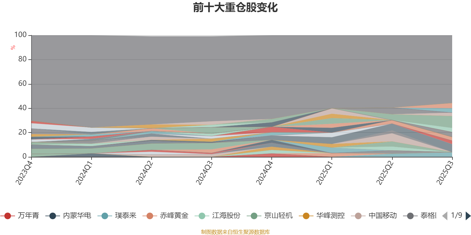 截至2025年三季度末,基金十大重仓股分别是阿里巴巴-W、鼎龙股份、聚合顺、小米集团-W、璞泰来、恩捷股份、亿纬锂能、中国黄金国际、思摩尔国际、壹网壹创。