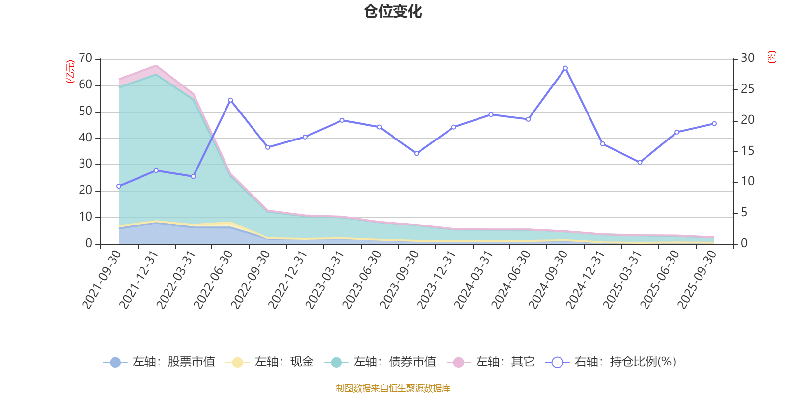 据定期报告数据统计,近三年平均股票仓位为18.9%,同类平均为19.14%。2024年三季度末基金达到28.51%的最高仓位,2021年三季度末最低,为9.36%。