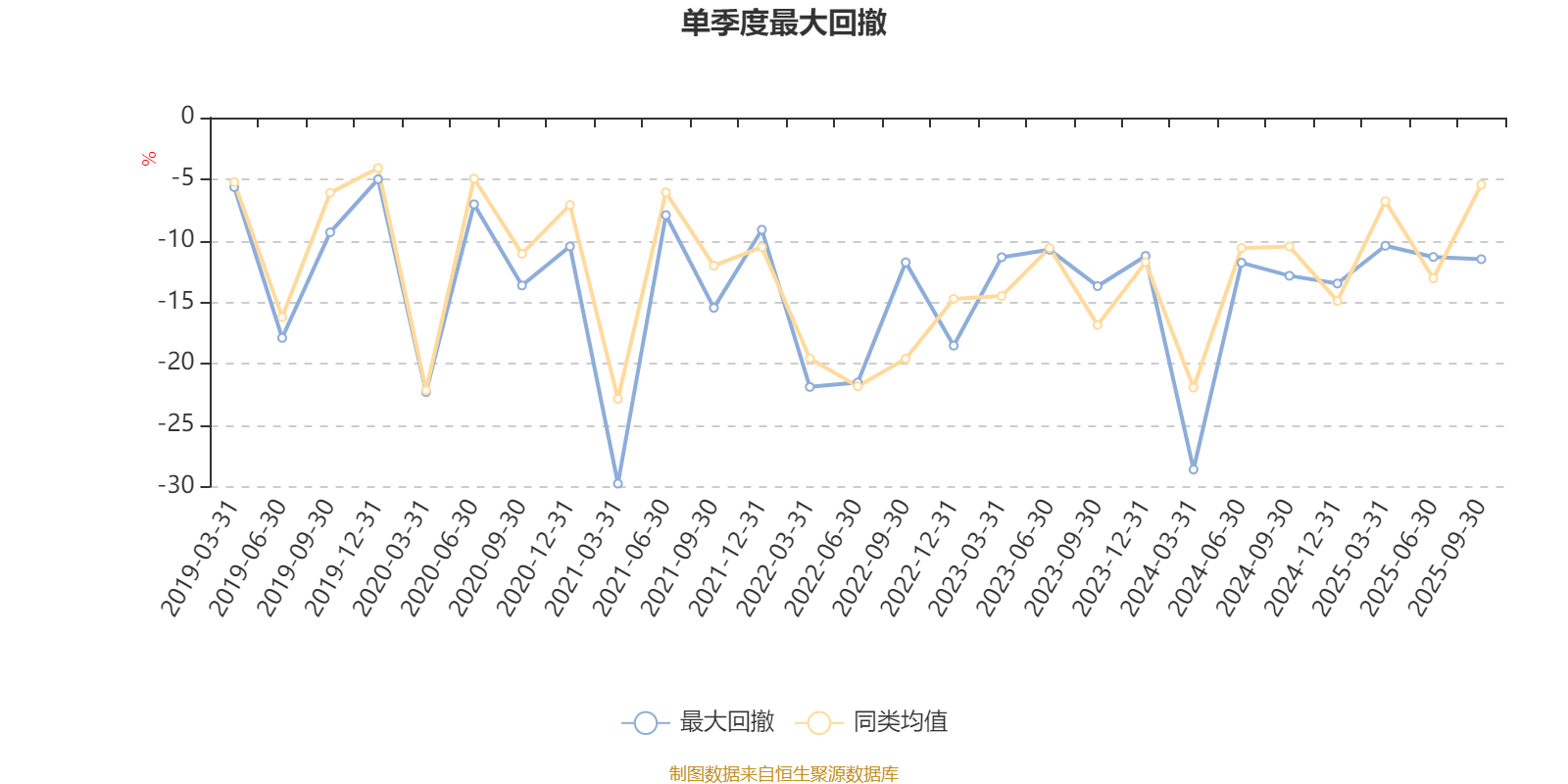 截至10月27日,基金近三年最大回撤为51.04%,同类可比基金排名22/29。单季度最大回撤出现在2021年一季度,为29.76%。