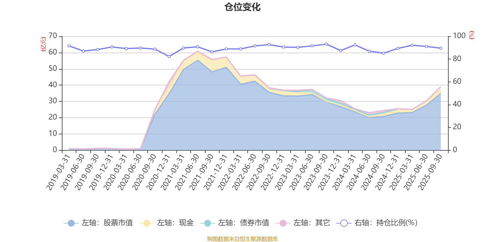 据定期报告数据统计,近三年平均股票仓位为89.98%,同类平均为87.59%。2023年三季度末基金达到93.13%的最高仓位,2020年末最低,为82.26%。