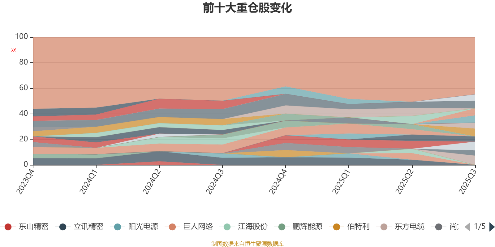 截至2025年三季度末,基金十大重仓股分别是东方电缆、晶晨股份、寒武纪、欣旺达、海光信息、恒瑞医药、长盈精密、药明康德、景旺电子、传音控股。