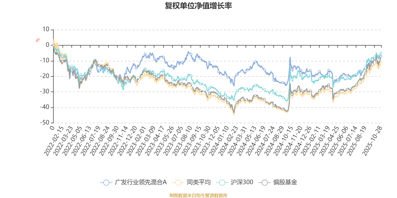 截至10月28日,广发行业领先混合A近三个月复权单位净值增长率为13.05%,位于同类可比基金144/265;近半年复权单位净值增长率为19.72%,位于同类可比基金203/265;近一年复权单位净值增长率为7.21%,位于同类可比基金254/265;近三年复权单位净值增长率为22.42%,位于同类可比基金123/253。
