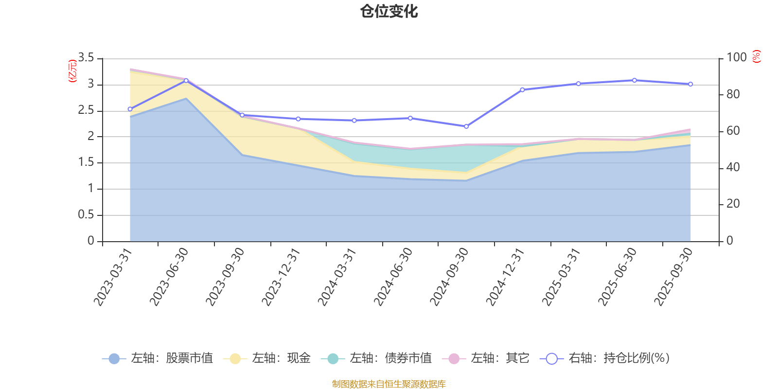 据定期报告数据统计,成立以来平均股票仓位为75.93%,同类平均为83.73%。2025年上半年末基金达到88.02%的最高仓位,2024年三季度末最低,为62.84%。