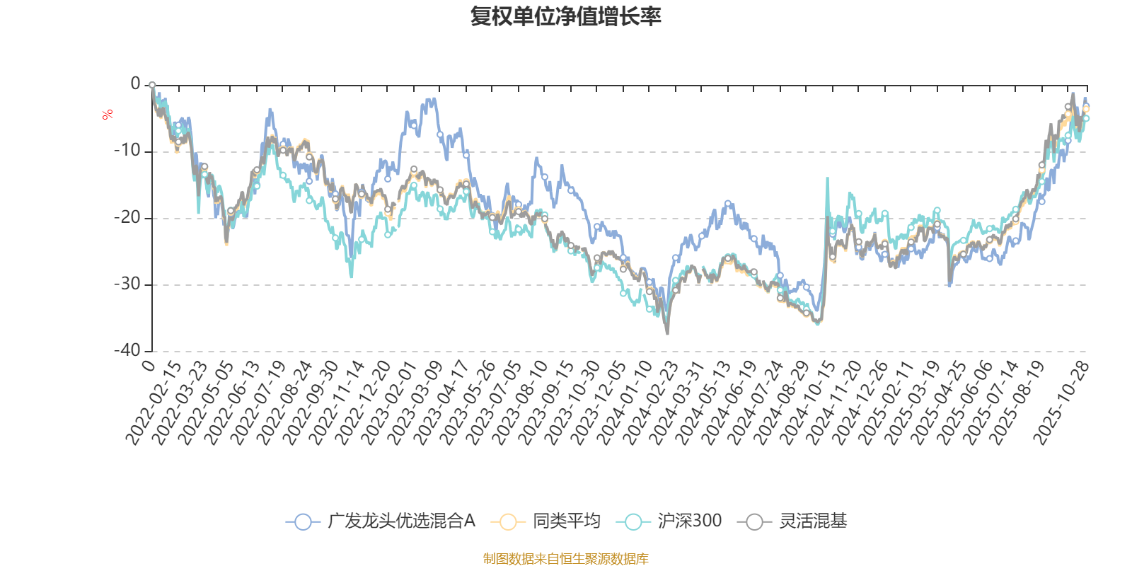 截至10月28日,广发龙头优选混合A近三个月复权单位净值增长率为23.37%,位于同类可比基金290/1287;近半年复权单位净值增长率为31.45%,位于同类可比基金443/1287;近一年复权单位净值增长率为21.61%,位于同类可比基金640/1287;近三年复权单位净值增长率为29.96%,位于同类可比基金371/1286。