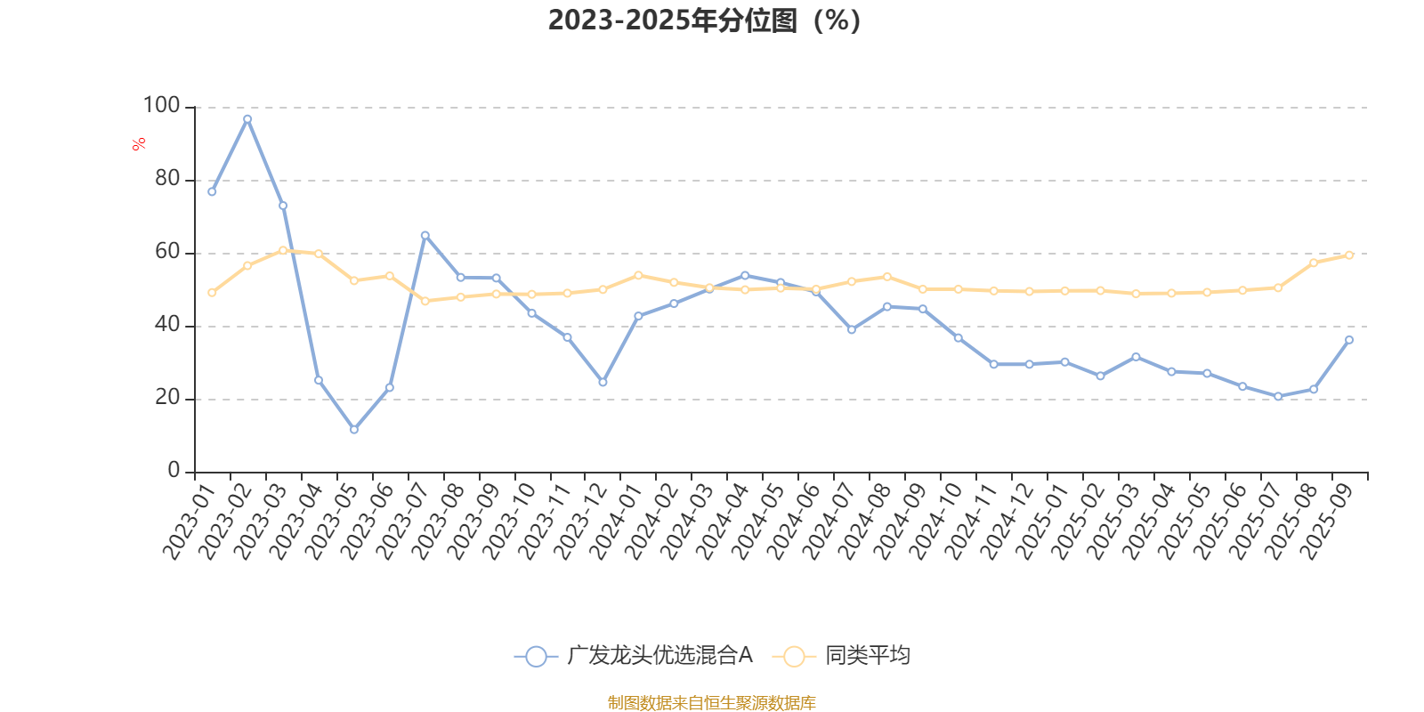 通过所选区间该基金净值增长率分位图,可以观察该基金与同类基金业绩比较情况。图为坐标原点到区间内某时点的净值增长率在同类基金中的分位数。