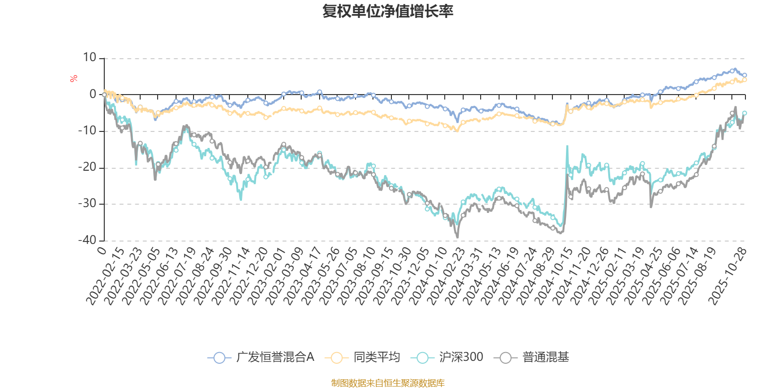截至10月28日,广发恒誉混合A近三个月复权单位净值增长率为1.03%,位于同类可比基金490/629;近半年复权单位净值增长率为4.74%,位于同类可比基金359/629;近一年复权单位净值增长率为8.56%,位于同类可比基金201/623;近三年复权单位净值增长率为9.10%,位于同类可比基金383/557。