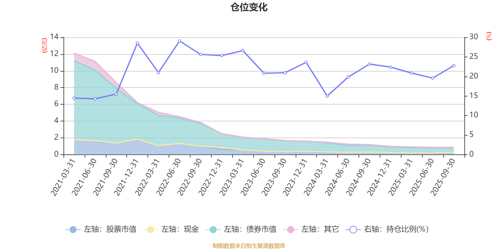 基金管理人在三季报中表示,我们对涨幅较大的电子、电气设备等板块进行了大比例止盈,置换入军工、快递、汽车等滞涨板块,持续提升港股的配置比例。债券方面,我们认为长债收益率上行之后,尽管边际赔率在抬升,但长期赔率依然不高,暂时维持短久期的票息策略。可转债估值不便宜,维持空仓,继续等待建仓机会。