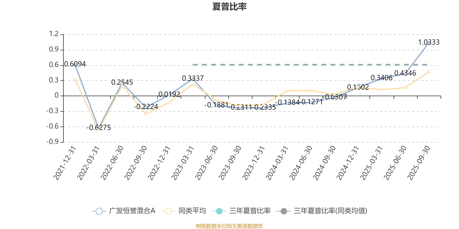 截至9月30日,基金近三年夏普比率为0.6005,位于同类可比基金311/553。