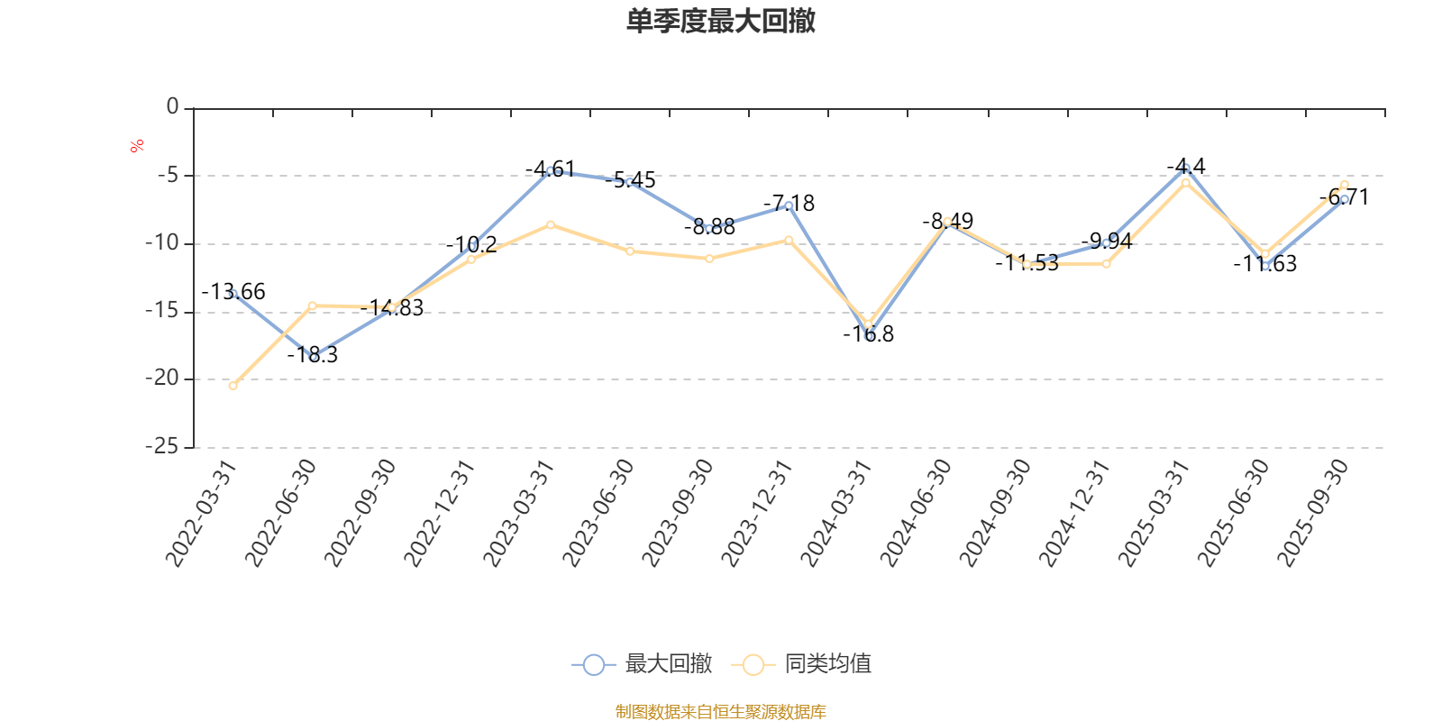 截至10月27日,基金近三年最大回撤为28.22%,同类可比基金排名38/156。单季度最大回撤出现在2022年二季度,为18.3%。