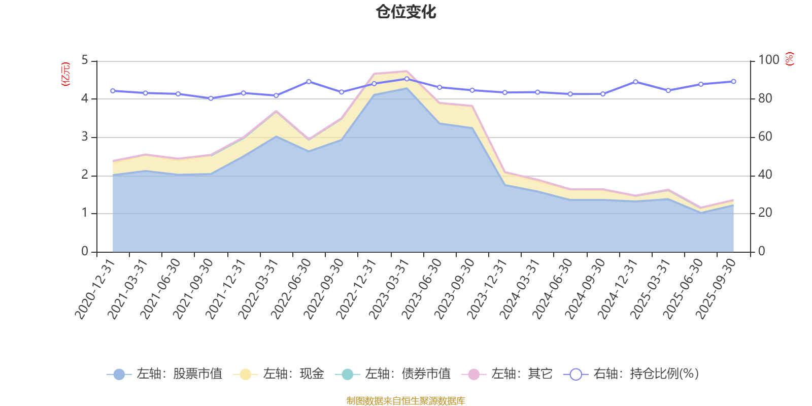 据定期报告数据统计,近三年平均股票仓位为86.06%,同类平均为88.24%。2023年一季度末基金达到90.62%的最高仓位,2021年三季度末最低,为80.4%。