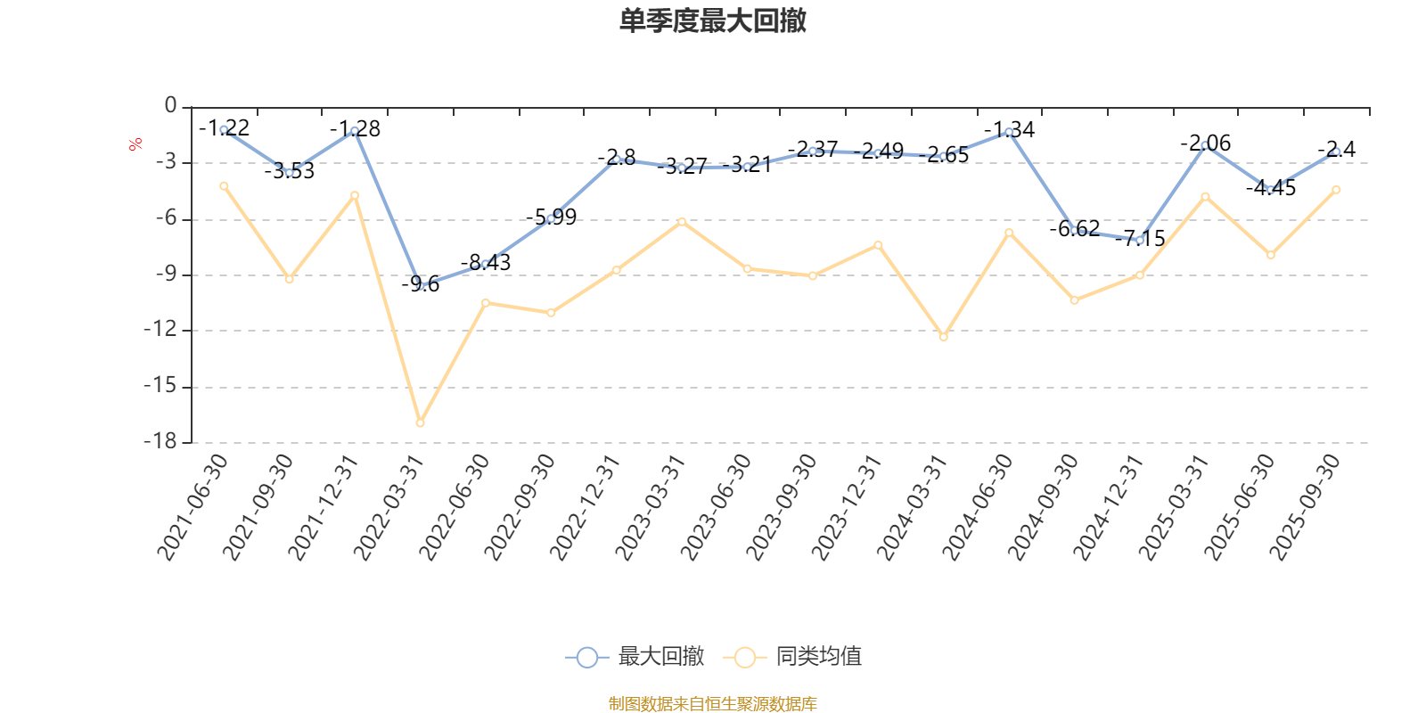 截至10月27日,基金近三年最大回撤为7.36%,同类可比基金排名1/117。单季度最大回撤出现在2022年一季度,为9.6%。