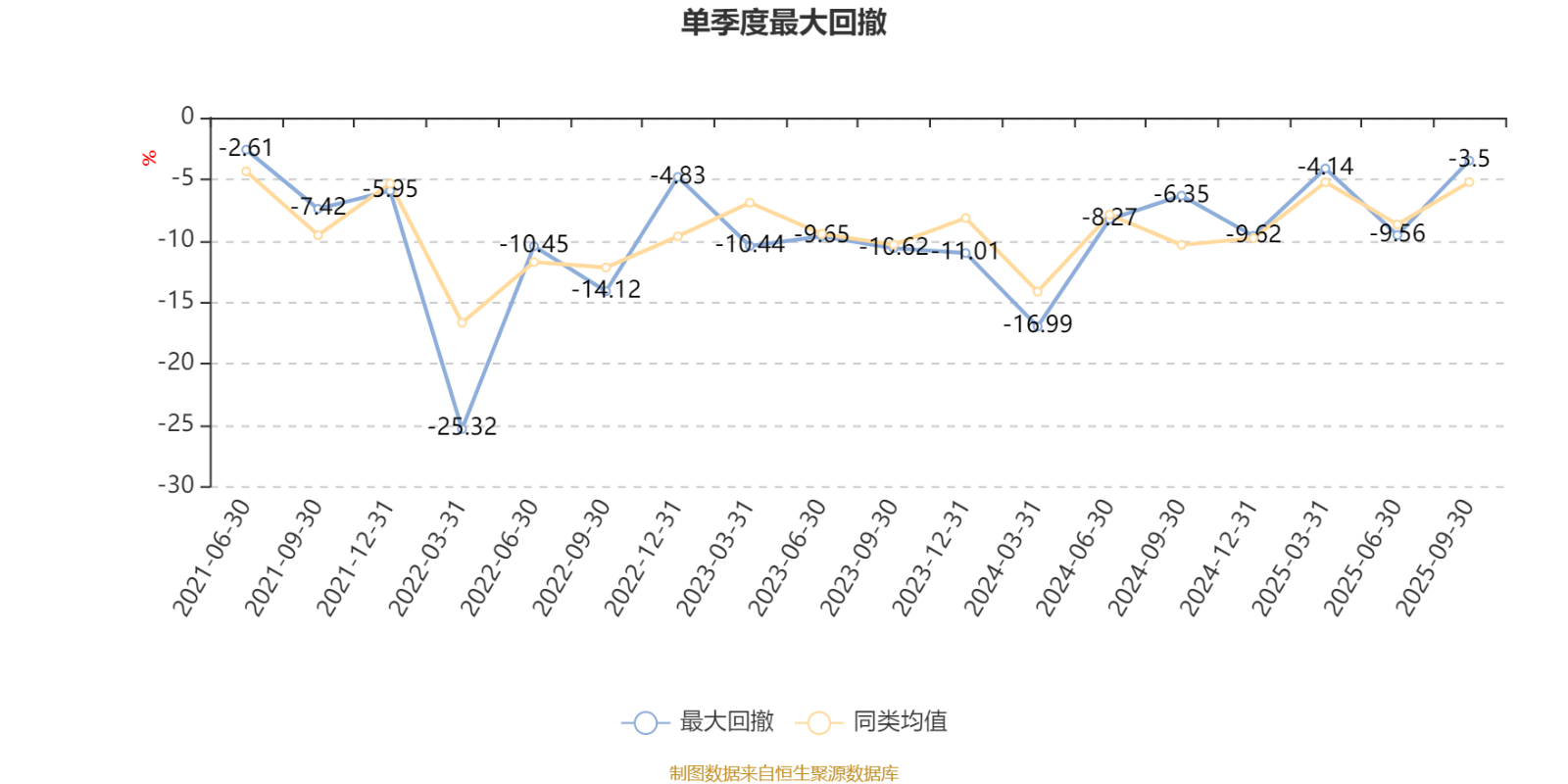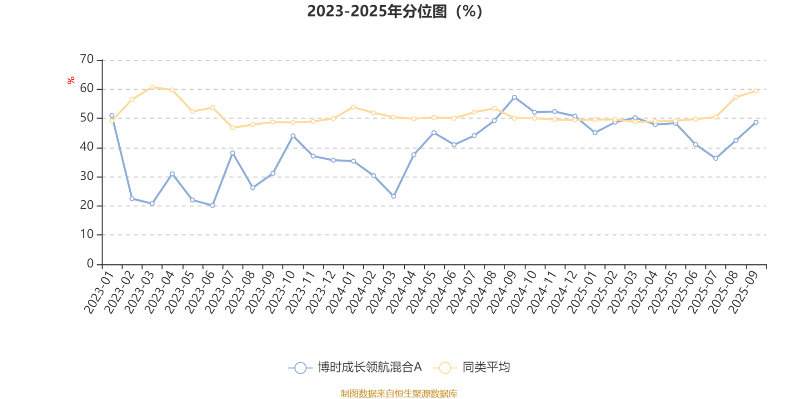 通过所选区间该基金净值增长率分位图,可以观察该基金与同类基金业绩比较情况。图为坐标原点到区间内某时点的净值增长率在同类基金中的分位数。
